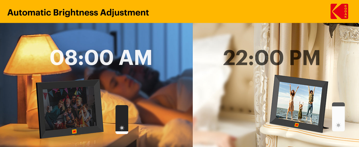 • 📲 Wireless Photo Sharing: Instantly send photos and videos from anywhere via the KODAK Digital Frame App or by emailing directly to the frame over Wi-Fi.
