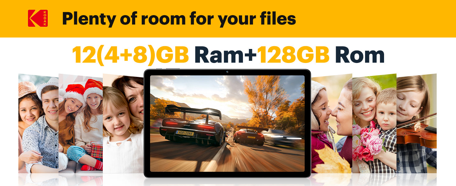 KODAK 11" Android 15 Tablet — 4GB RAM, 128GB (Up to 1TB), 16MP Dual Camera, 1200×1920 FHD, 8000mAh, Metal Body, Face Unlock