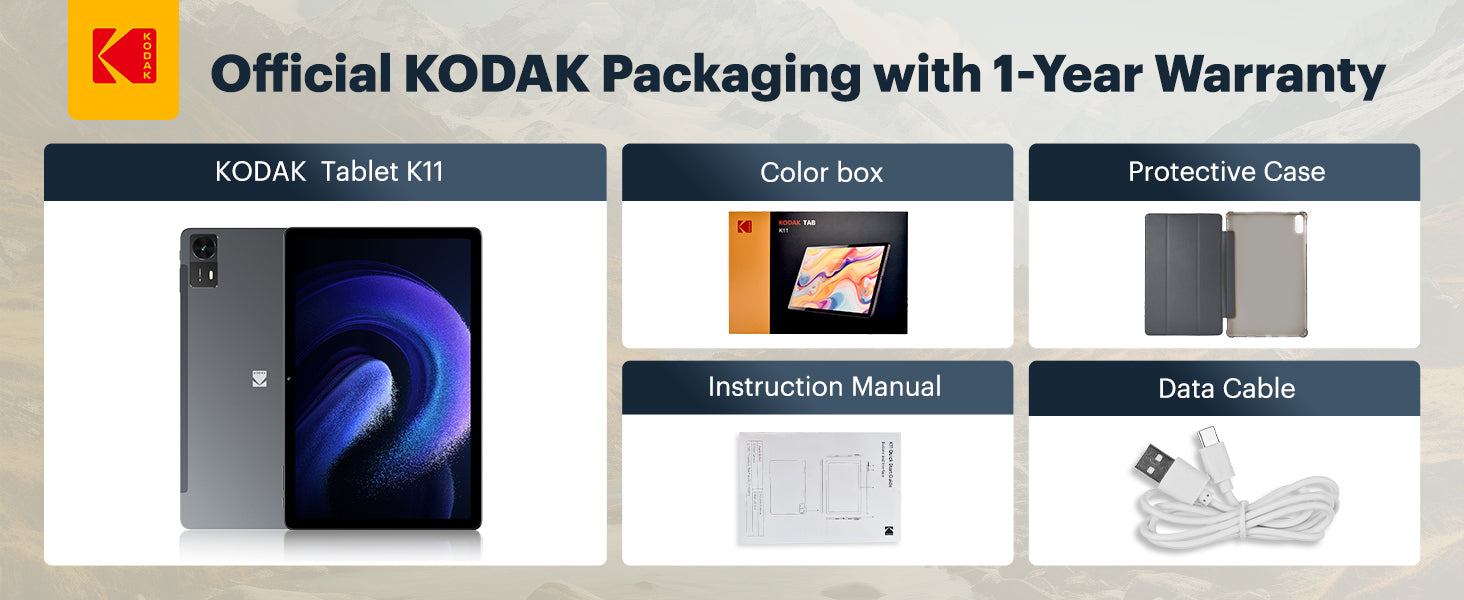 Enjoy a powerful, stylish, and versatile tablet built for both productivity and entertainment. The KODAK 11-inch Android tablet combines sleek metal craftsmanship, immersive visuals, and all-day battery life for seamless performance at home, work, or on the move.