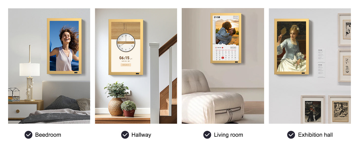 • Premium Matt Gold Metal Frame – Adds a luxurious touch to your living space, combining art and technology in one elegant design.