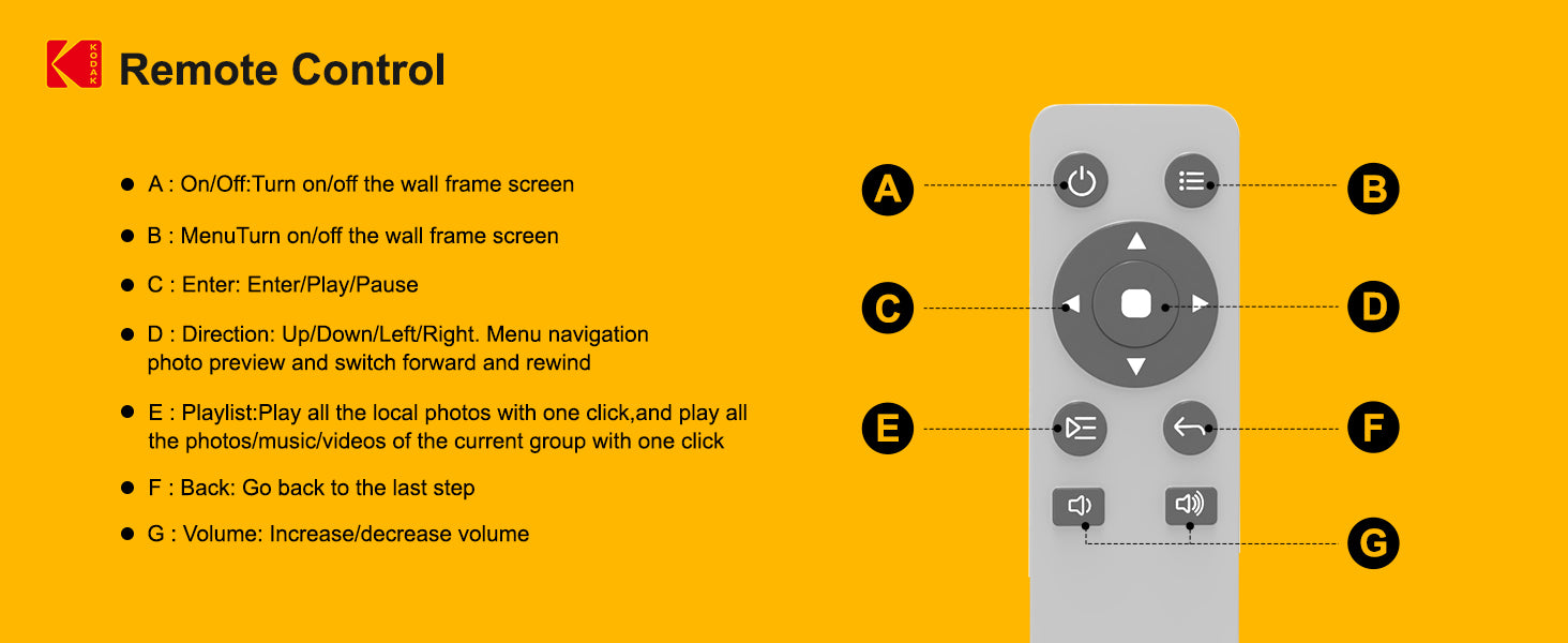 • Remote Control Included – Conveniently operate your frame and settings from across the room.
